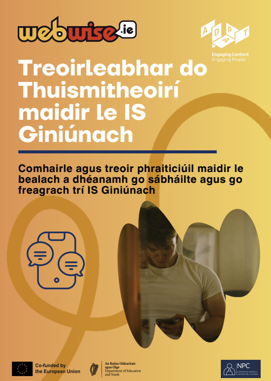 Déanadh Treoir na dTuismitheoirí maidir le Generative AI ag Webwise i gcomhar leis an ADAPT Centre agus Comhairle Náisiúnta na dTuismitheoirí.